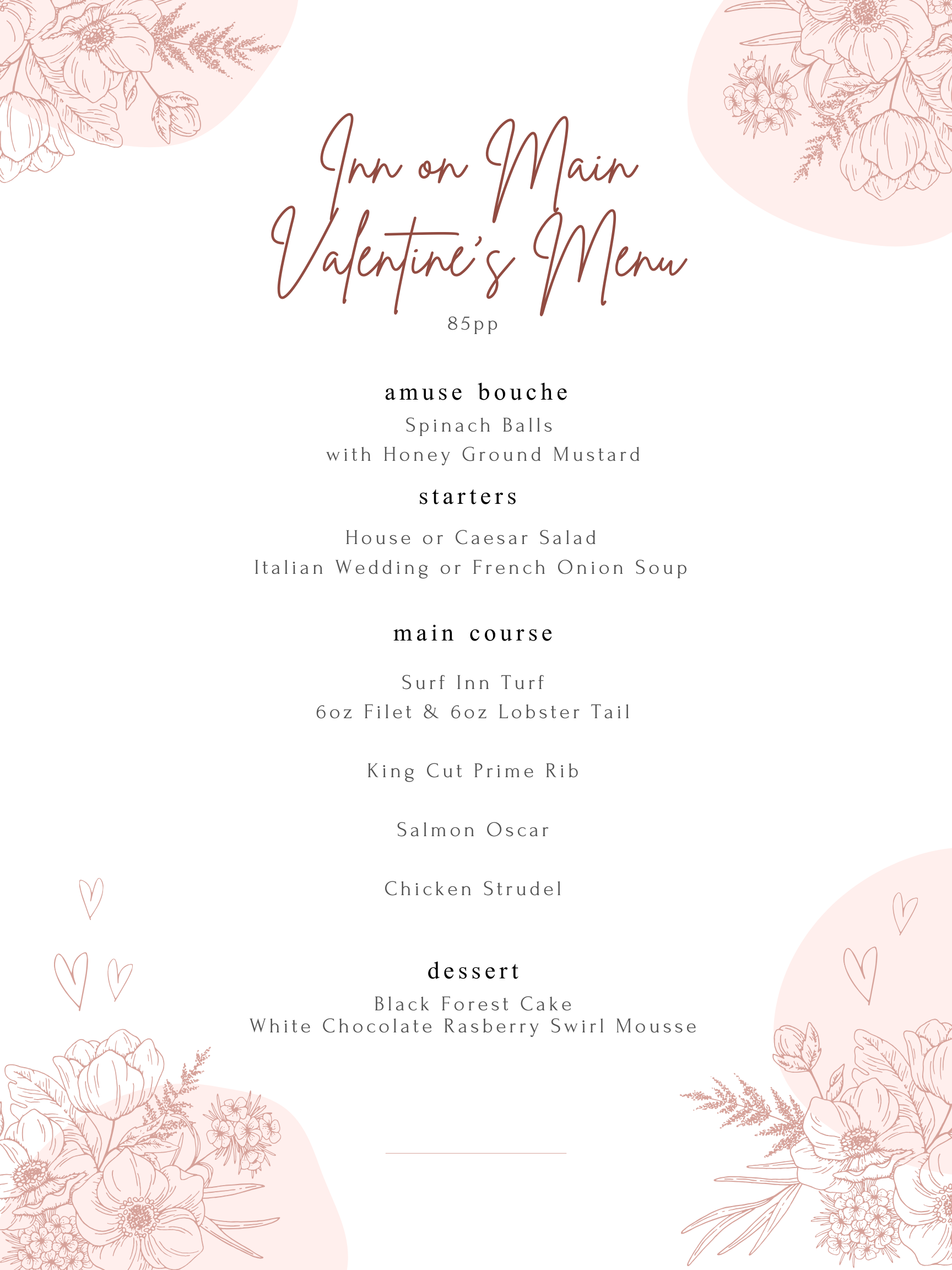 Housed in a century-old building, our venue features modern amenities and design while maintaining a historic ambiance that our patrons truly enjoy. Our menu of casual dining showcases innovative and delicious dishes that highlight local and seasonal ingredients. Our bar service includes unique and creative cocktails to perfectly pair with our dishes. Our team is committed to providing friendly and welcoming service to every guest, making each visit to the Inn On Main unforgettable.
